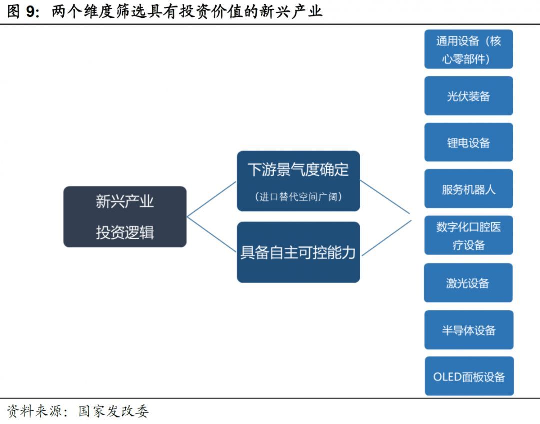 相對(duì)于傳統(tǒng)周期產(chǎn)業(yè),新興產(chǎn)業(yè)具備更大的增長(zhǎng)潛力,代表著未來的發(fā)展方向。近年來以光伏、鋰電、無人機(jī)、服務(wù)機(jī)器人等諸多領(lǐng)域?yàn)榇淼男屡d產(chǎn)業(yè)快速發(fā)展,其核心技術(shù)具有國(guó)際競(jìng)爭(zhēng)力,是《中國(guó)制造 2025》的倡議方向。但是,設(shè)備作為固定資產(chǎn)投資,在任何新興領(lǐng)域均有其周期屬性,因此我們需要從兩個(gè)維度篩選具有投資前景的新興產(chǎn)業(yè):一是下游需求景氣度確定向上(或者即使下游需求總量不變,但是進(jìn)口替代空間廣闊);二是具備自主可控能力。在此標(biāo)準(zhǔn)下,高端通用設(shè)備、光伏設(shè)備、半導(dǎo)體設(shè)備、激光設(shè)備、OLED 面板設(shè)備、服務(wù)機(jī)器人、數(shù)字化口腔醫(yī)療設(shè)備將是 2019 年的重點(diǎn)方向。