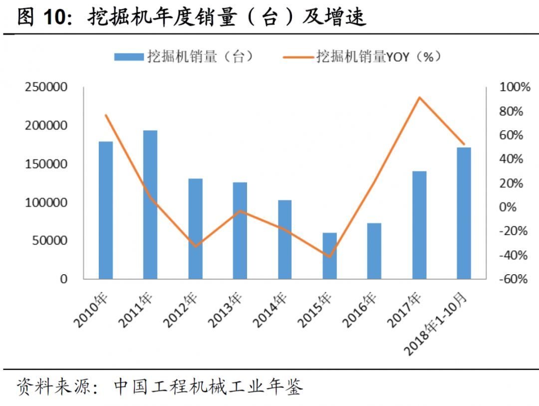 工程機(jī)械的液壓件市場(chǎng)目前仍以外資品牌為主,也一度成為主機(jī)廠擴(kuò)產(chǎn)的瓶頸所在。細(xì)分品類中挖機(jī)油缸已經(jīng)被恒立液壓為代表的國(guó)產(chǎn)廠商基本占領(lǐng),但是液壓泵、閥、馬達(dá)的進(jìn)口替代才開始起步。2017-2018 年這一波主機(jī)廠的生產(chǎn)熱潮無意中造就了國(guó)產(chǎn)品牌的市場(chǎng)突破,再次詮釋了“機(jī)會(huì)是留給有準(zhǔn)備的人” 這一哲學(xué)道理。即使2019 年主機(jī)廠增產(chǎn)進(jìn)度可能放緩,但是液壓件進(jìn)口替代的存量市場(chǎng)空間廣闊,國(guó)產(chǎn)恒立液壓就是代表品牌。