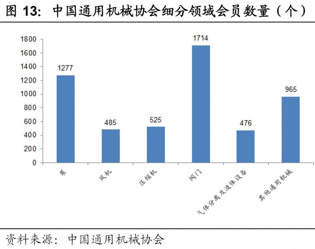另一方面, 2016 年我國(guó)通用設(shè)備企業(yè)數(shù)量為 2.37 萬個(gè);從細(xì)分領(lǐng)域來看,即使按照中國(guó)通用機(jī)械協(xié)會(huì)會(huì)員單位來計(jì)算,2017 年底總會(huì)員數(shù)量為 5442 個(gè),其中泵、閥門行業(yè)的會(huì)員單位數(shù)量均超過 1000 個(gè)。在供給側(cè)改革的大背景下,行業(yè)馬太效應(yīng)日益強(qiáng)化。
