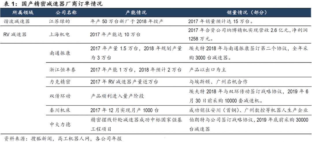 2017 年以來國(guó)產(chǎn)減速器廠商規(guī)?;唵蔚挠楷F(xiàn)充分說明了國(guó)內(nèi)精密減速器公司的技術(shù)進(jìn)步,而與之對(duì)應(yīng)的是精密減速器供應(yīng)商的規(guī)?;a(chǎn)能建設(shè)緊鑼密鼓,因此預(yù)判精密減速器國(guó)產(chǎn)化進(jìn)程已經(jīng)達(dá)到“臨界點(diǎn)”,相關(guān)廠商將受益。